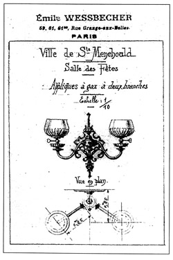 Mais ce sera Emile WESSBECHER qui remportera le marché. Plus compétitif, il propose entre autre lustres et appliques à gaz (voir illustration).