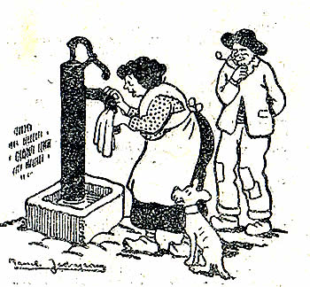 Oui mais voilà, petit à petit la pompe s’écaillait et s’obstinait à rester noire. La femme s’approchant poussa alors un cri de désespoir : « Malheur, ce n’est pas du cuivre ».