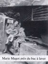 Entre les soins aux enfants, et il y en avait toujours des petits, la cuisine, les lessives, le raccommodage “ nous n’allions jamais à l’école avec des vêtements sales ou troués - elle faisait un jardin, élevait un cochon, des lapins, des poules, des pigeons (de la race « mondain ») des oies, ces dernières particulièrement agressives envers les quidams qui franchissaient la barrière.